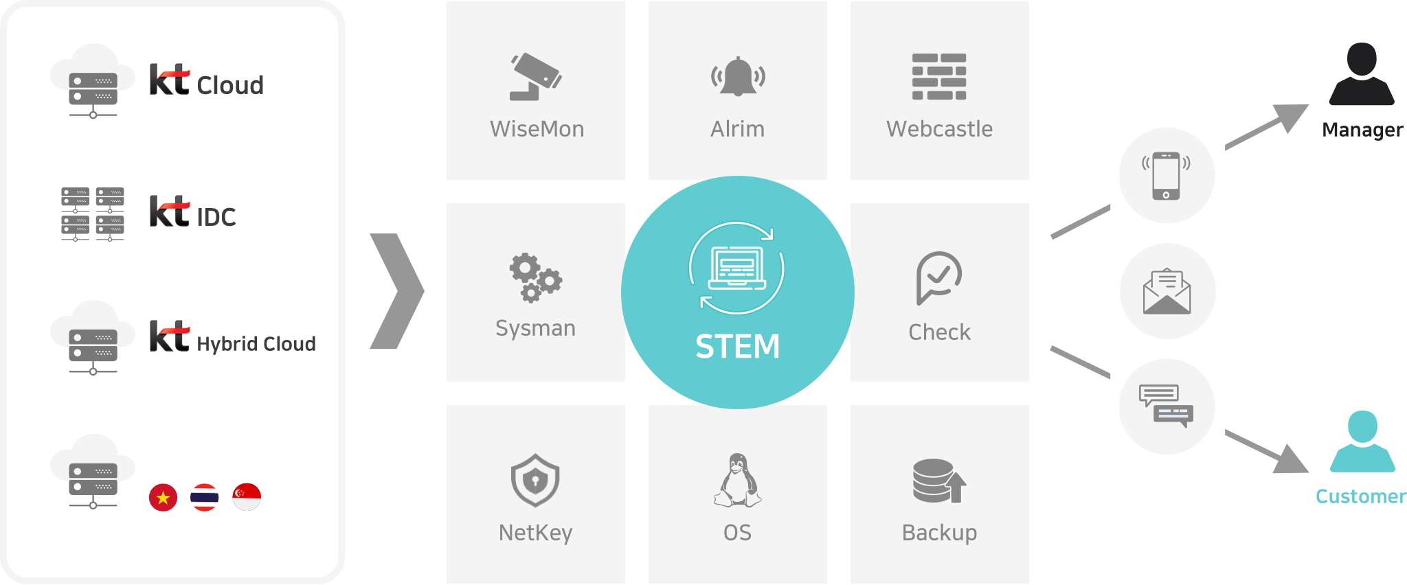 - It monitors the resources, services, networks, and processors on the server and notifies to administrators through 'Alrim App' when something goes wrong.